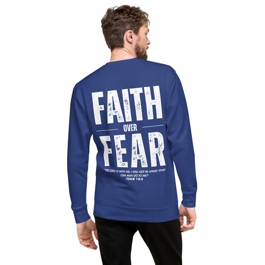 Faith Over Fear Unisex Premium Sweatshirt - Psalm 118:6 Inspirational Streetwear