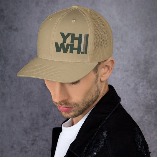 YHWH Trucker Hat - Unisex, Adjustable Snapback, Structured Front, Mesh Options